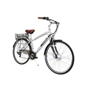 This columbia 700c prestige men s electric bike features an aluminum frame 3 piece alloy crank and adjustable stem for comfort.