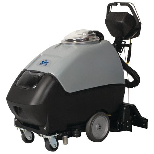 Using a 7 gallon solution tank and 7 gallon recovery tank this machine sprays a diluted solution onto the carpet where it can be agitated using a 15 inch brush.